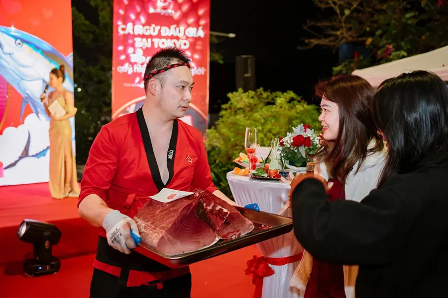 • Trình diễn xẻ cá ngừ đại dương trực tiếp bởi đầu bếp Nhật Bản, mang đậm phong cách ẩm thực quốc tế
